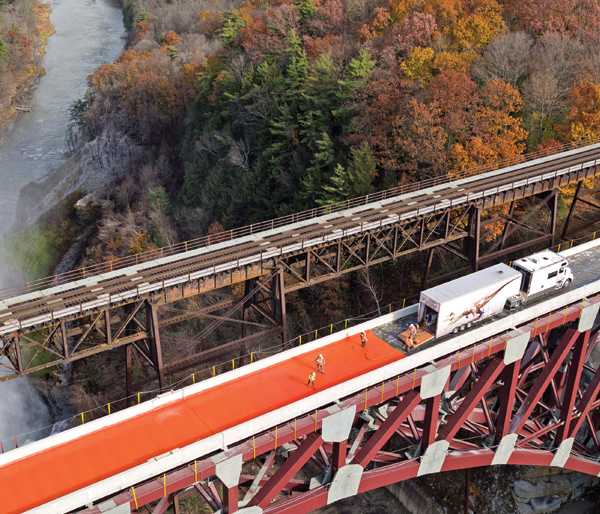 Railroad bridge decks suffer deterioration from the corrosive effects of both natural and man-made agents, including tremendous pounding of high point loads. Our spray-applied elastomeric waterproofing membranes, specifically formulated and highly durable, provide permanent waterproofing protection with high-performance systems that are impervious to deicing chemicals, water, ballast, stray current and more.